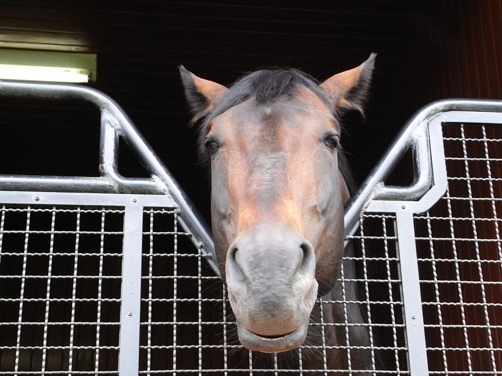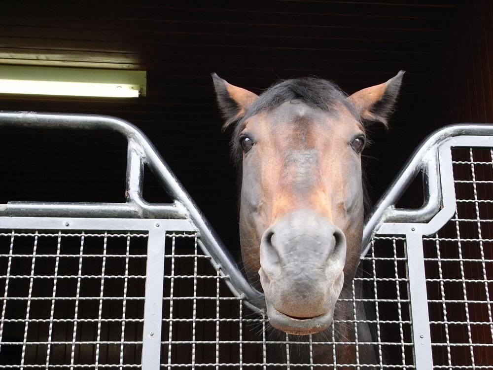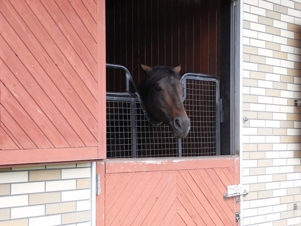 放牧地での見学は9月からのようで、馬房から顔だけ、という