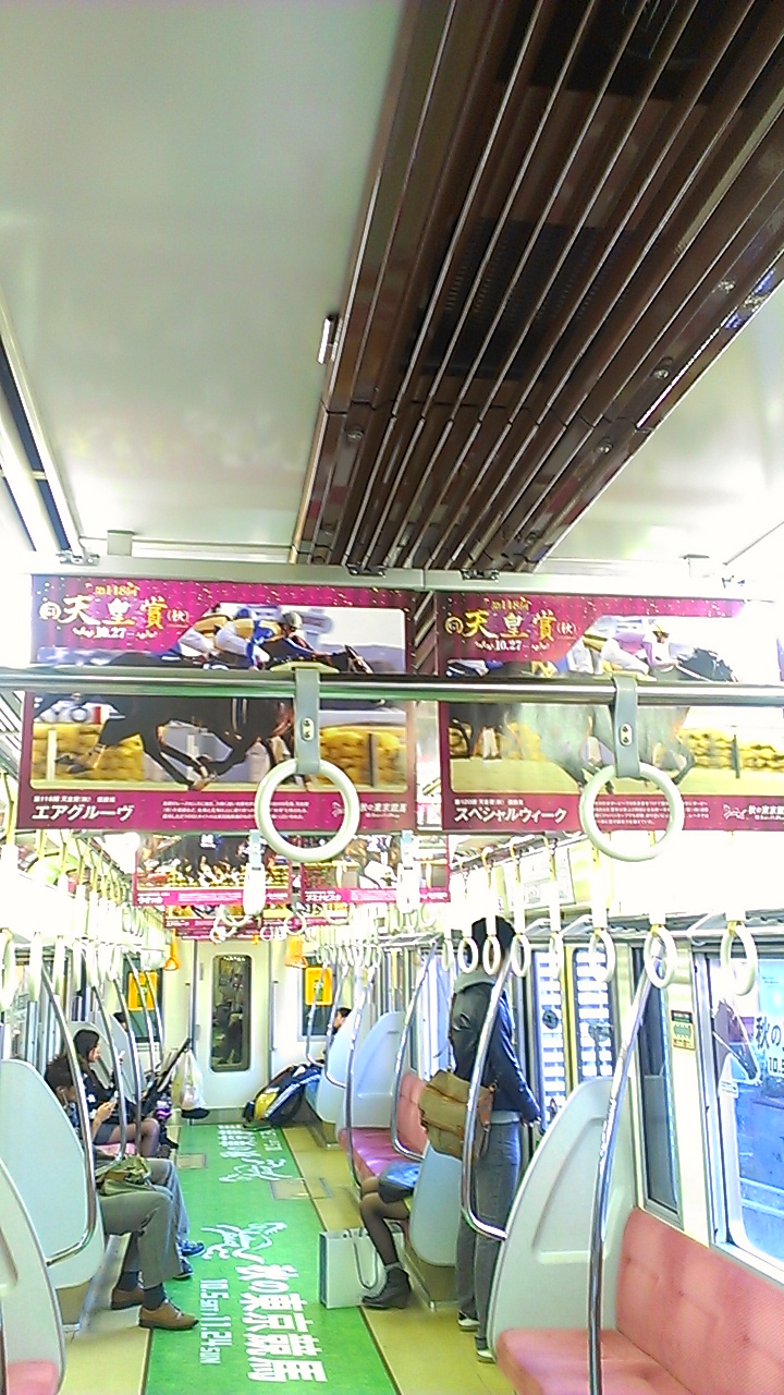 帰りは京王線に乗ったのですが、車内の吊り広告がまるっと天皇賞でした。